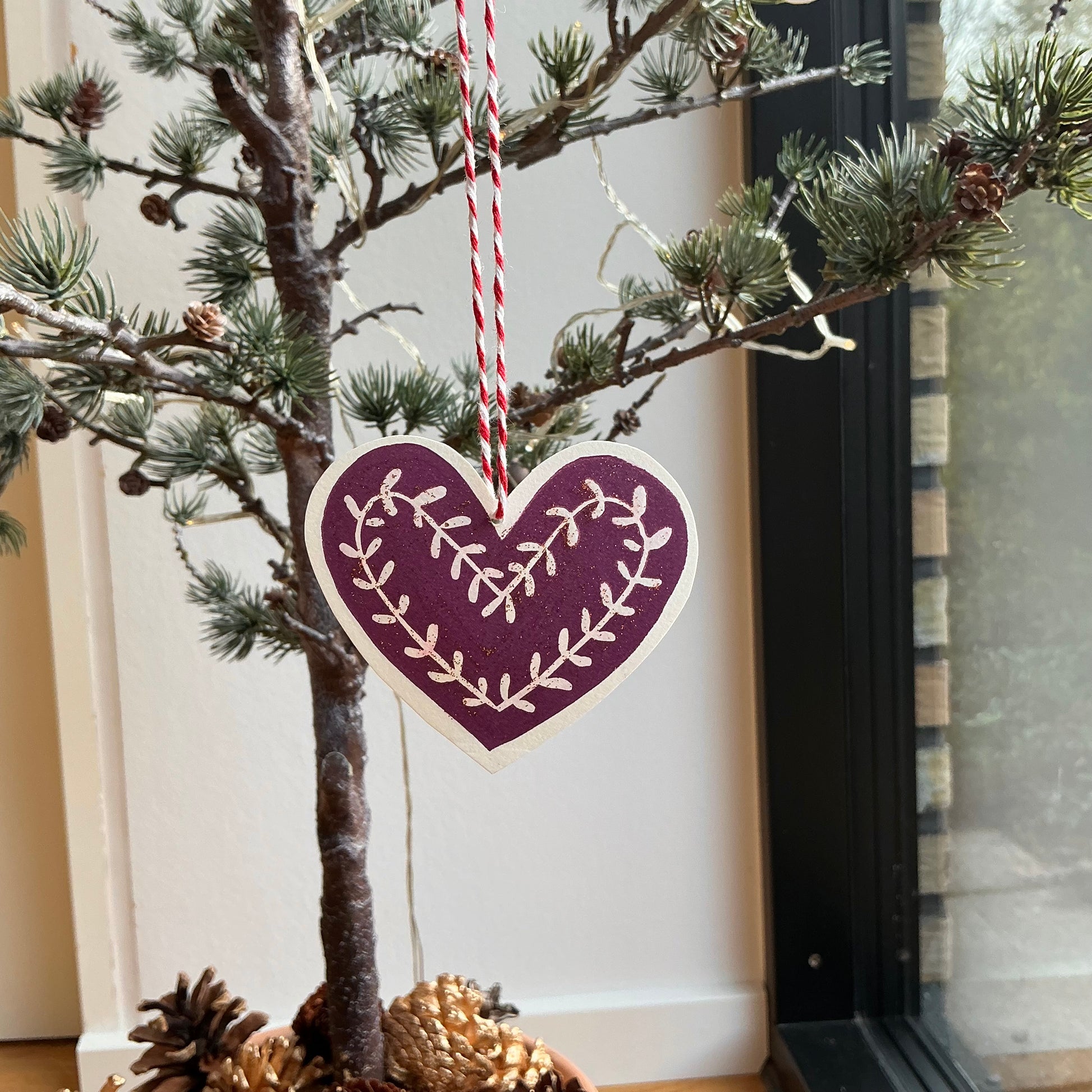 Et lille juleophæng, der er trykt i hånden og på begge sider. Glimmerdetaljerne er malet i hånden, og bomuldssnoren er allerede isat, så det er nemt at hænge op✨